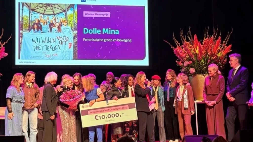 De feministische beweging Dolle Mina heeft de Joke Smitprijs gewonnen. De regeringsprijs voor de emancipatie van vrouwen werd vandaag door demissionair staatssecretaris Koen Becking (VVD) uitgereikt in Leiden. De winnaars krijgen een beeld en een geldbedrag van 10.000 euro. Dolle Mina heeft zich het afgelopen jaar opnieuw uitgevonden en op verschillende manieren actie gevoerd om aandacht te vragen voor de veiligheid van vrouwen op straat. Zo protesteerde de groep tegen een tekort aan opvangplekken voor vrouwen en organiseerde ze een mars tegen femicide in Utrecht. ...